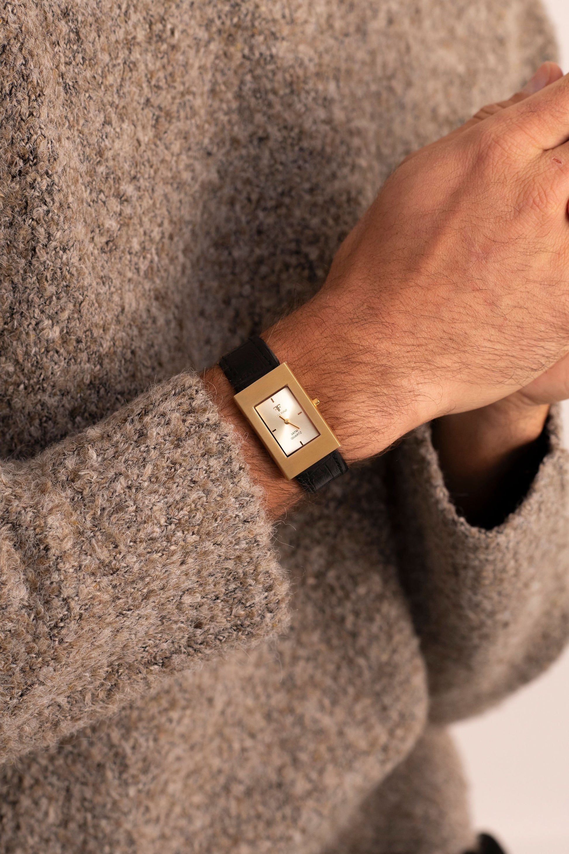 A refined take on a classic style, the Vecchio pairs elegance with everyday wearability. Featuring a distinctive square gold case and a fully adjustable leather strap, it offers both comfort and sophistication. Simple yet striking, the Vecchio is designed to complement any look with timeless appeal.